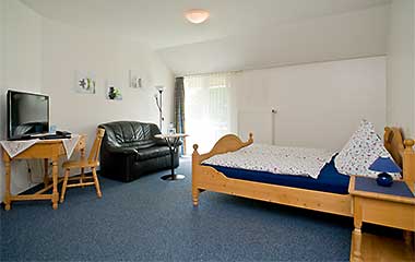 Unser Haus verfügt über ein Familienzimmer mit 2 separaten Schlafräumen sowie verschiedene Doppel- und Einzelzimmer — alle mit Dusche/WC, Kabel-TV, Selbstwahl-Telefon und kostenlosem W-Lan.