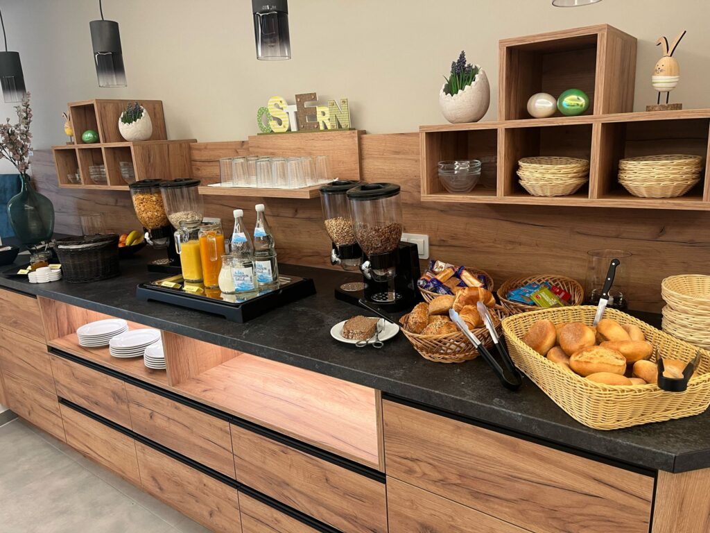 In gemütlicher Atmosphäre beginnt Ihr Tag mit einem reichhaltigen Frühstücksbuffet — ganz nach dem Motto „Essen wie bei Muttern“.
